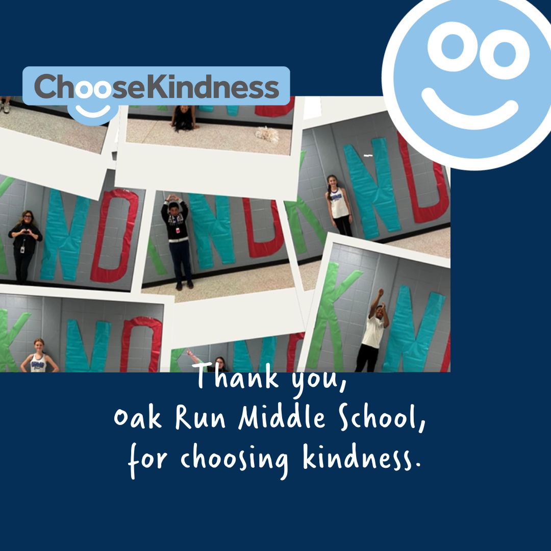 Oak Run Middle School is a shining example of choosing kindness! Through initiatives like its Kindness Committee, acts of service, and uplifting one another, they demonstrate how kindness can spark joy and brighten someone’s day!