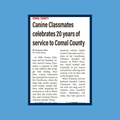 • Herald-Zeitung: Canine Classmates celebrates 20 years of service to Comal County