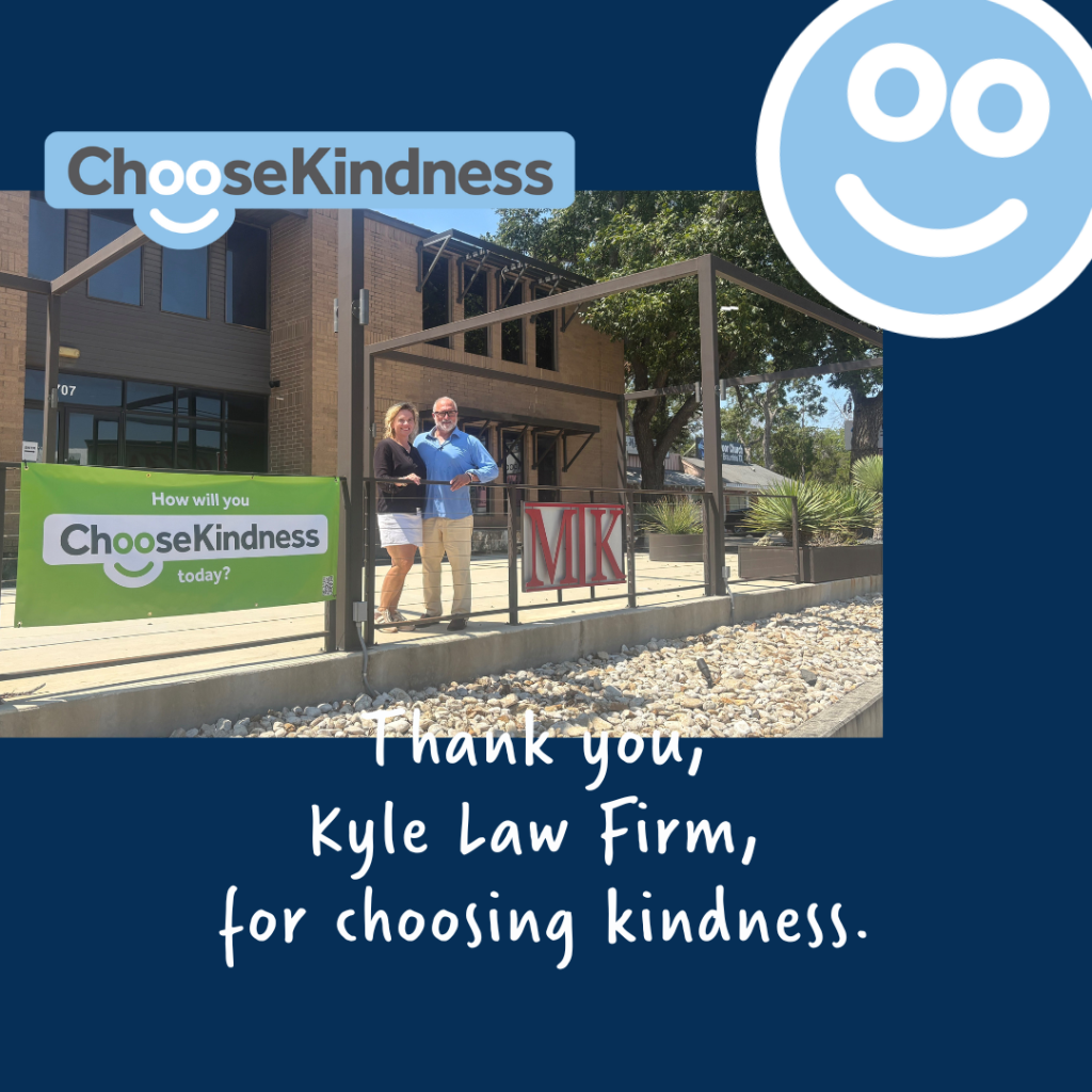 The Kyle Law Firm is proudly spreading the message of kindness, with a Choose Kindness banner now welcoming all who pass by their building!